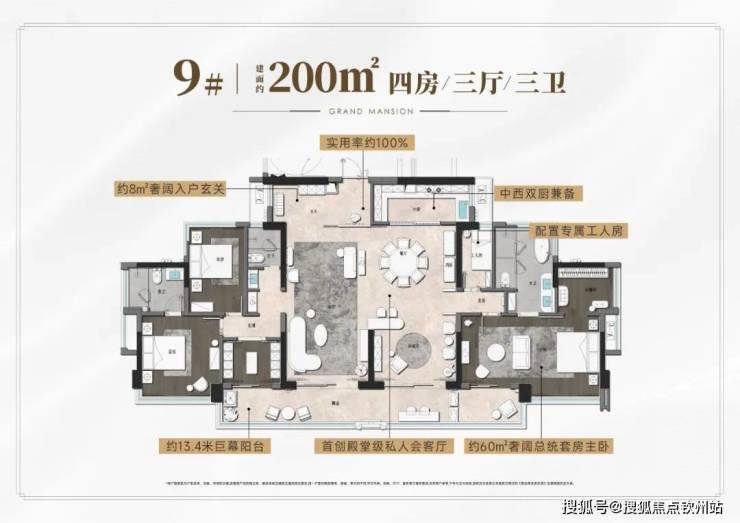 专属入户玄关就有8㎡,相当于一个次卧大小,豪华感溢于纸面;U+I型中西厨设计,配以最舒适的空间尺度,轻轻松松容纳10人私宴厨师团队。