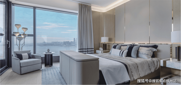 朝东向,4.5米客厅开间,7.5米大阳台,270℃客厅半海景、城市景观、花园内景。