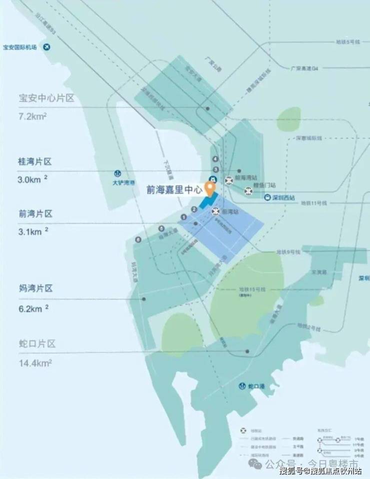 【多维交通】轨:地铁1号线、5号线、9号线、11号线,空:深圳宝安国际机场、香港国际机场、澳门国际机场、珠海金湾机场,陆:前海大道、临海大道、广深沿江高速、南坪快速路。前海的道路交通网络十分发达,地面快速路和地下快速路结合,到深圳湾、蛇口、科技园整体约20分钟内可到达。