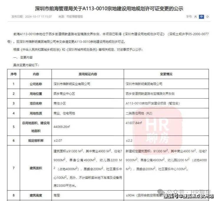 此外,项目临近地铁11号线的碧海湾站,百度测算的步行距离约在500米左右,步行8分钟可达。项目已于去年12月开工建设,预计将在12月底入市,将提供约700套海景住宅。其地段价值虽然不及宝中,但是近几年随着旁边的企鹅岛的崛起,一直热度很高,碧海新盘项目同样值得期待。宝安碧海A113-0010宗地,开发商为深圳市锦新明集团有限公司,该地块此前由商业、住宅用地调整为二类居住用地。