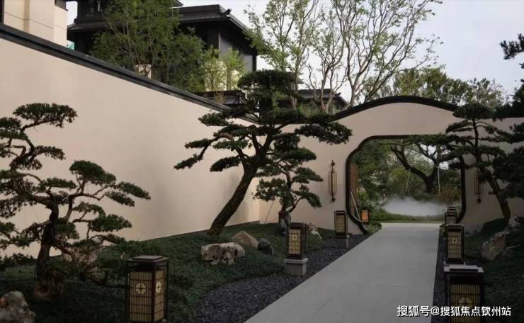 王府大门形制,结合现代工艺与材质,以对阵高墙关满园春色,打造尊贵礼序感府邸入口前庭