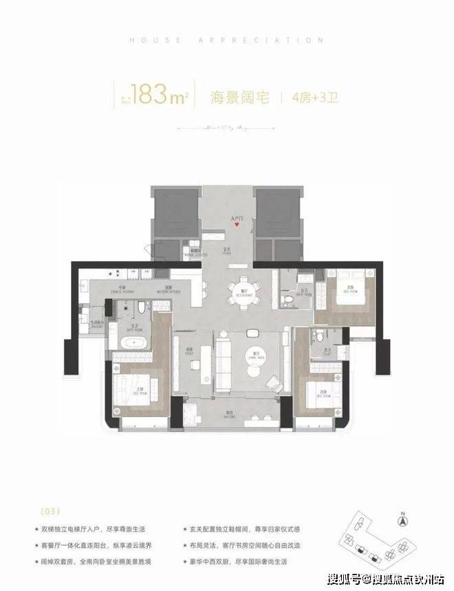 ⋐ 183 ㎡ 4房3卫1900-2200万