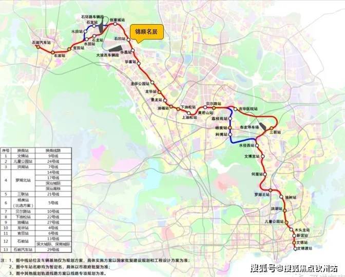 临近6号线阳台山东站,4站深圳北,5站福田,规划地铁25号线石凹站;