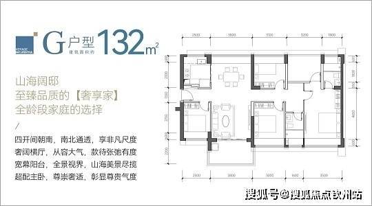 户型建面 (㎡)格局特点分布三房983 房 2 厅 2 卫三开间朝南,客厅 3.6 米开间,LDKB 一体化,得房率约 89%1/5/6A/6B 栋 03/04 户四房1164 房 2 厅 2 卫四开间朝南,南北通透,客厅 3.8 米,得房率 93.13%1/6B 栋 01 户、5/6A 栋 02 户五房1325 房 2 厅 2 卫五开间朝南,客厅 3.8 米,南北通透,多功能空间6B 栋 02 户五房1525 房 2 厅 3 卫双主卧套间,横厅 4.1 米,270° 环幕视野,得房率 92%5 栋 01 户顶复171-233复式大户型楼王位置,3.1 米层高,俯瞰山海,仅 17 套各楼栋顶层