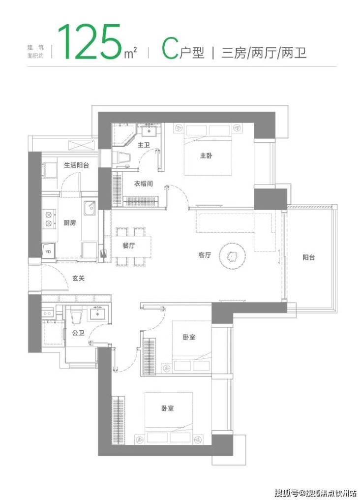 瞰景三房,飘窗、阳台拉开居住视野,主卧私享功能产备 LDK一体化设计,打造无边界、社交化的餐客厨系统