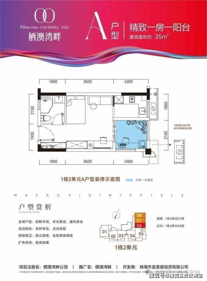A户型:建筑面积约35㎡,精致一房,百变阳台创意空间