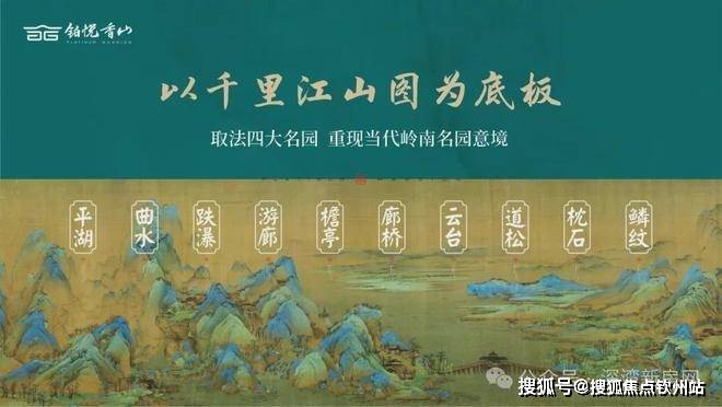 园林设计以《千里江山图》为灵感蓝本,巧妙融合岭南四大名园精髓,复刻佛山梁园"半边亭"。通过"漫卷云章"、"金水澜庭"、"琉璃水院"三进式景观轴线,呈现移步换景的东方美学。