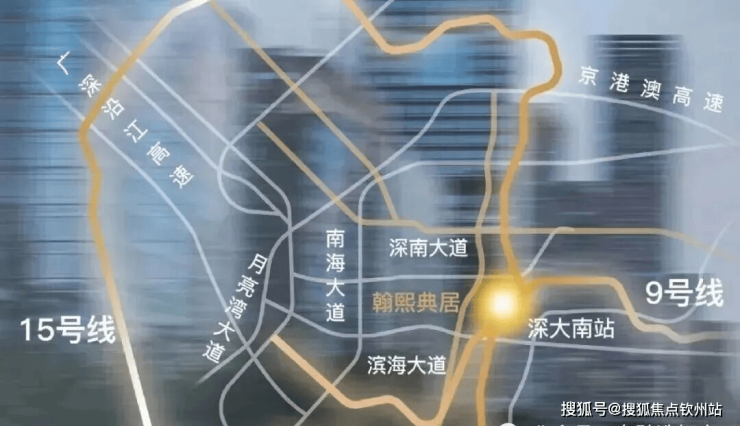 翰熙典居占位深圳经济命脉滨海大道与南北科创主轴南海大道交汇处十字轴心。集萃城市区位、科创、人文、TOD四大中心源点。依托两大科技园、四大总部基地,集总部经济+全球科创中心价值,坐享区域发展利好。