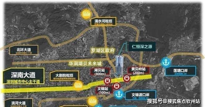 仁恒深之源,择址于粤港澳大湾区,屹立于深圳主动脉深南大道头部,距离文锦渡口岸仅约800米,承接深港融合的时代发展红利。坐享罗湖千亿级城市更新,与约220万方的湖贝超级旧改仅一路之隔,云端之上对望约500米湖贝塔,下楼即享约49万方奢华万象系商业,约4万方高阶人文配套。既是城市主轴的中心,还是旧改片区的资源聚集地,更是深港融合的第一触点。