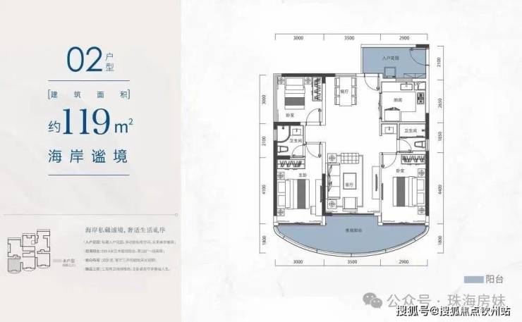 其中,建面约114㎡、约119㎡,以及约130㎡的瞰海户型,完美将房子融入了碧海蓝天的美景之中。
