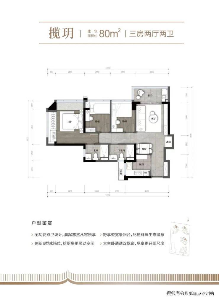 (1)80㎡三房两卫,折后总价约296-315万;