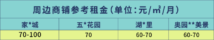 (表格内所展示的周边部分已出租商铺租金,仅供参考,具体以实际为准。租金数据来源网络)