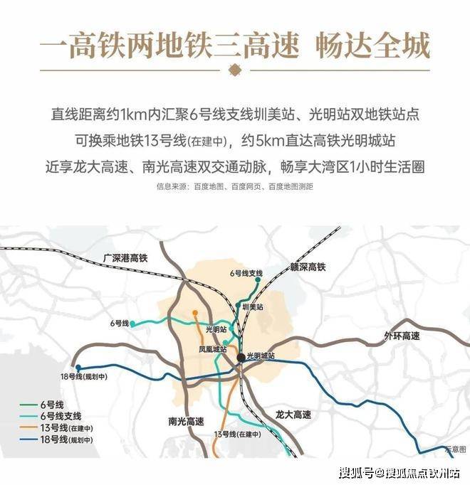 交通配套:项目距离地铁6号支线“圳美站”约900米,6号线光明站距离约1.2公里,3站到凤凰城站可换乘13号地铁线,5站到光明城站,这里可以换乘光明城高铁站,7站到宝安上屋站,12站到南山西丽留仙洞,15站南山高新园,19站到后海。