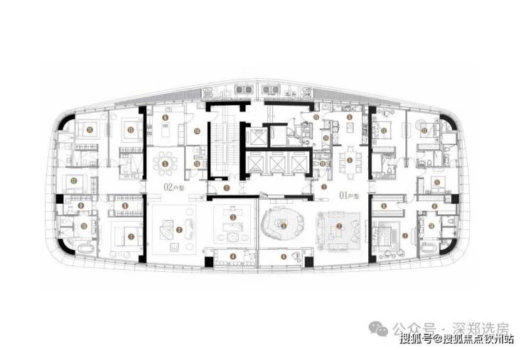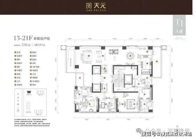 T1栋则是更加奢华的3梯1户(一层只有一户),533-540㎡