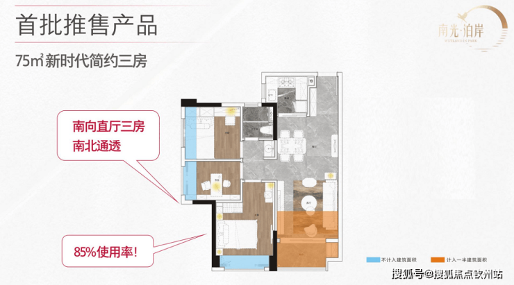 (1)75㎡三房:适用于小家庭或首次购房者,两梯五户设计,东南向户型。