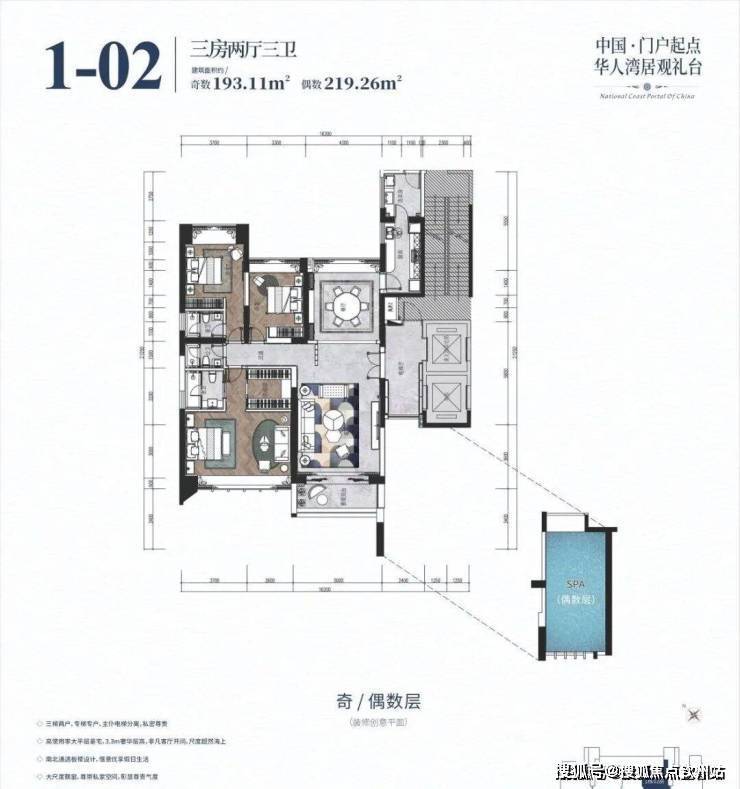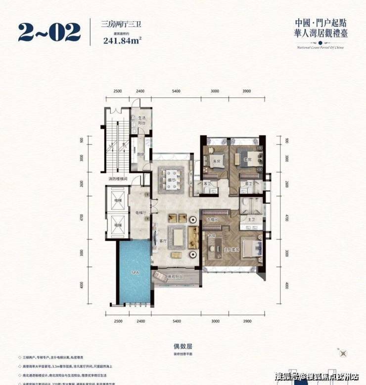 高使用率大平层豪宅,3.3米奢华层高,非凡客厅开间,尺度超然海上
