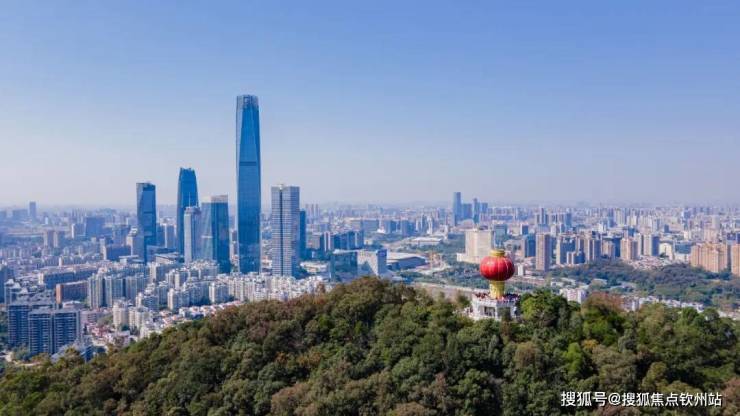 另一边,是绿郁青葱: 目之所及,是见证东莞沧桑变化的黄旗山景及山顶灯笼,脚下是元美公园、虎英公园、东莞植物园等生态资源。