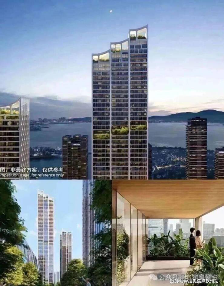 项目规划5栋超高层住宅,采用全玻璃幕墙设计,实用率超95%,主力户型为209㎡以上大平层。项目以“第四代住宅”标准打造,配备空中连廊、星空会所、架空泳池等共享空间,并融入垂直绿化体系