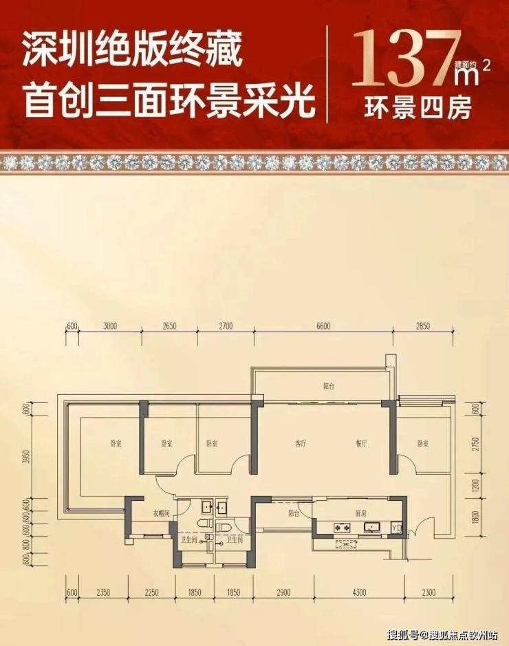 137㎡的4房2厅2卫,是大横厅双阳台南北通透格局,客餐厅6.6米开间,LDKB一体化,五开间朝南,约93%超高使用率(含赠送)