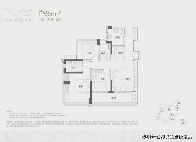 建面约95㎡3房2卫