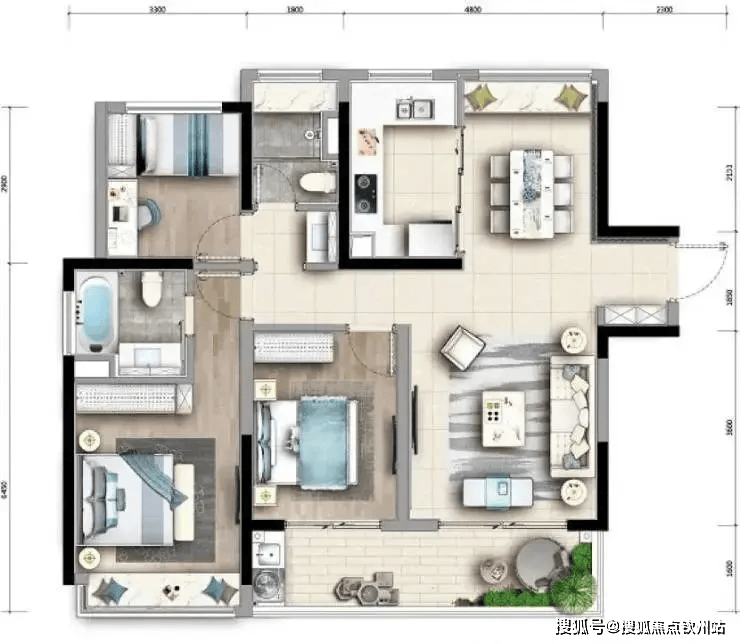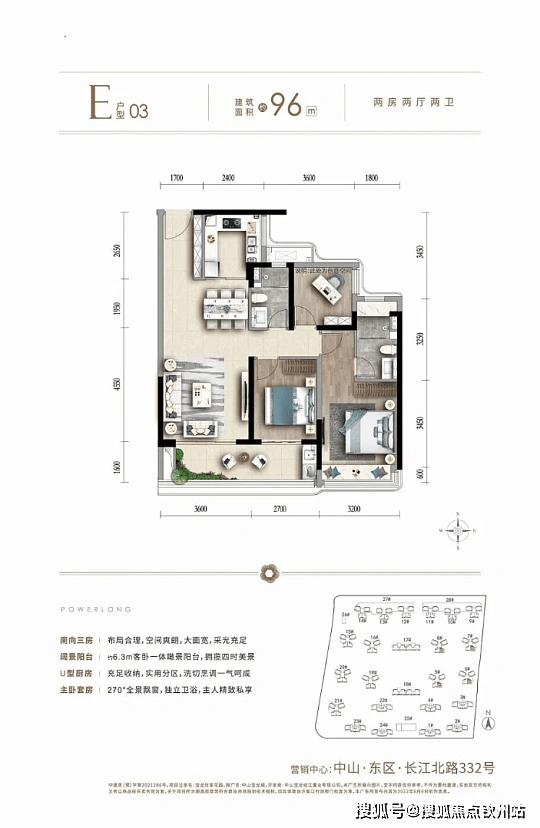 96㎡三房两厅两卫:总价约 115 万起,刚需首选,双阳台,通风采光佳。