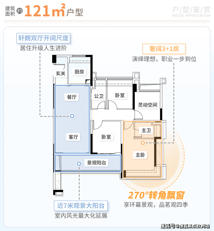 多阳台、多飘窗和百变空间的设计,直接让项目的实用率达到市面上建面约200㎡大平层才有的奢阔尺度。