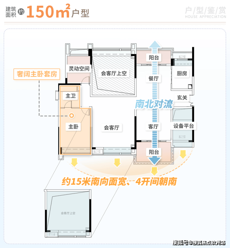 南北对流餐客厅,加上约15米的南向面宽,让居住的尺度感,拉到满级。