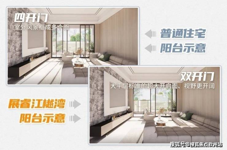 再比如,在展盈天钻看到的卧室窗、阳台推拉门、比一般住宅要大的进深的阳台,大面积双层中空玻璃,以及可以让室外景观最大化的阳台双扇推拉门……等等,都能在「展睿丨江樾湾」看到同款。