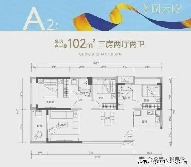 102㎡的3房2厅2卫,(A2户型,分布1栋4单元01/06户型)(设计的是经典横厅格局,进门独立玄关,客厅3.5米开间,LDKB一体化设计,3个卧室分别做到了主卧13.36㎡/次卧8.74㎡/次卧9.75㎡(包含墙体飘窗),L型厨房,公卫三段式分离,朝东向或者西向。