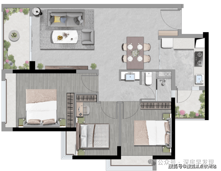 约6.5m南向宽景阳台,环幕视野 四季入怀餐客一体,无界融合 盛载多元生活想象全明通透,推窗即揽山境阳光清风流转百变户型,多元实用 二胎家庭成长空间