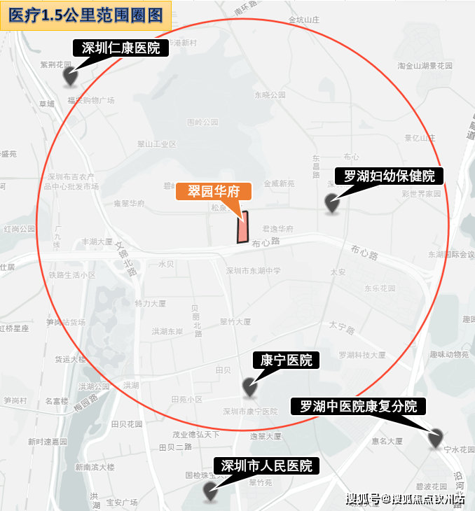 医疗:项目1.5公里范围内缺少综合性医院,距离最近的是罗湖妇幼保健院,其次是深圳仁康医院和康宁医院(精神病专科医院),生活中如遇轻微的身体不适可步行就近到罗湖妇幼保健院就医,比较便捷。