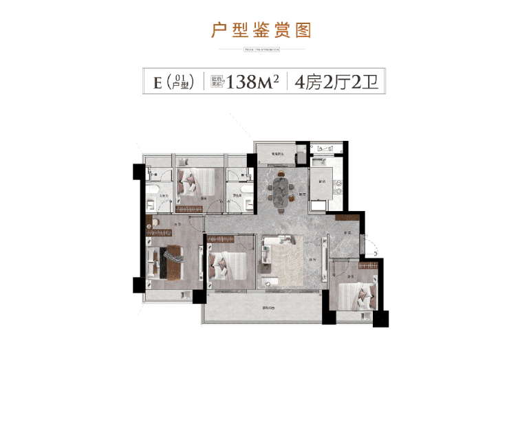 如建面约138㎡户型来说,南向4开间+超强南北对流双阳台,风光无限的生活,开窗即可尽揽。