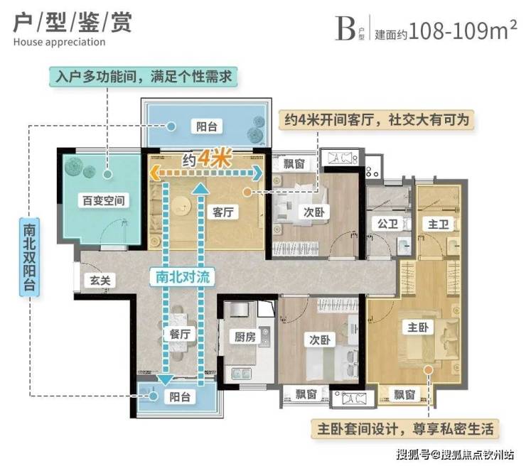 建面约111㎡品质四房,为108㎡户型的升级版,舒适度和景观度双倍升级。