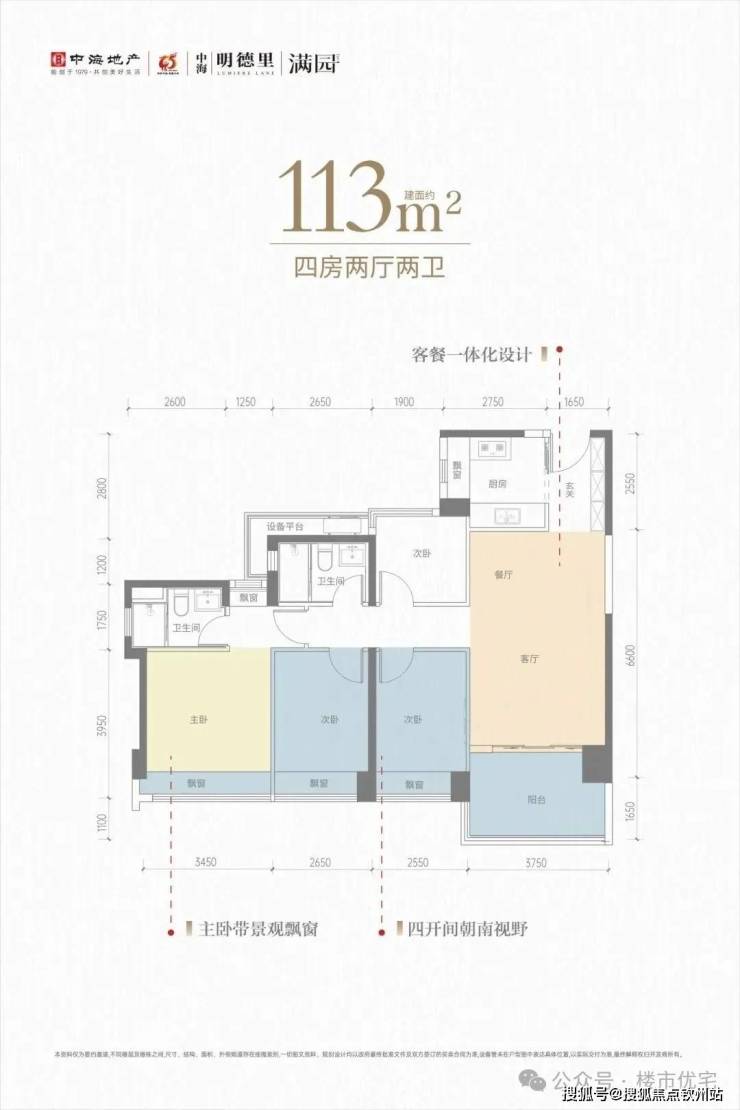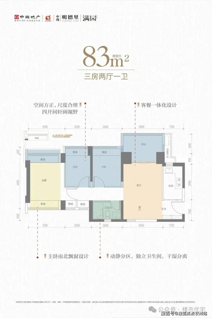 产品面积段:建面约83—113㎡三至四房