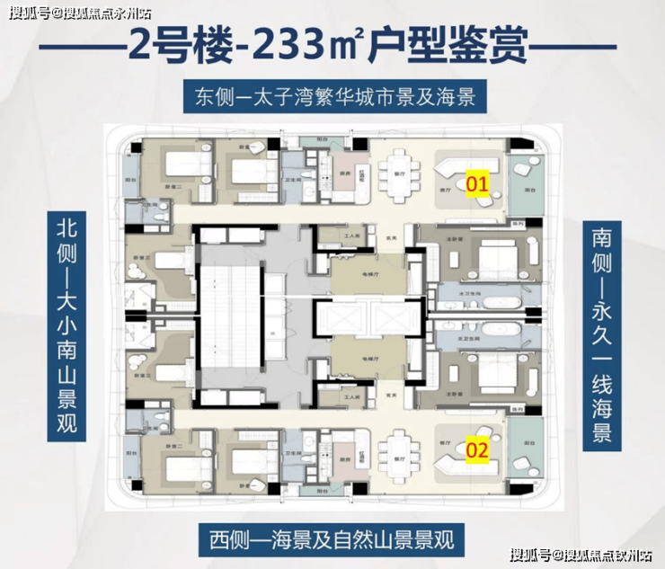 稀缺纯大平层(233-307㎡)公寓产品,通燃气,带阳台(户户三阳台),户户270度三面景观,南北通透,朝南看海;以比肩世界顶级奢居标准,及鲸系科技系统,成就湾区一线恒定资产,为塔尖人物量身定制,打造高端纯粹顶贵圈层。