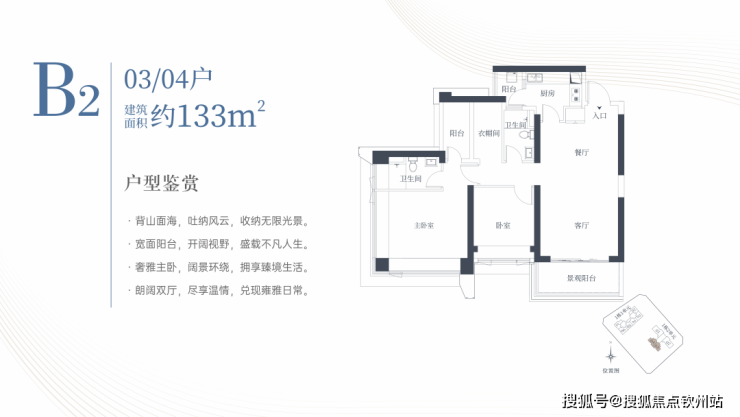 1栋二单元B2户型:面积约为133㎡