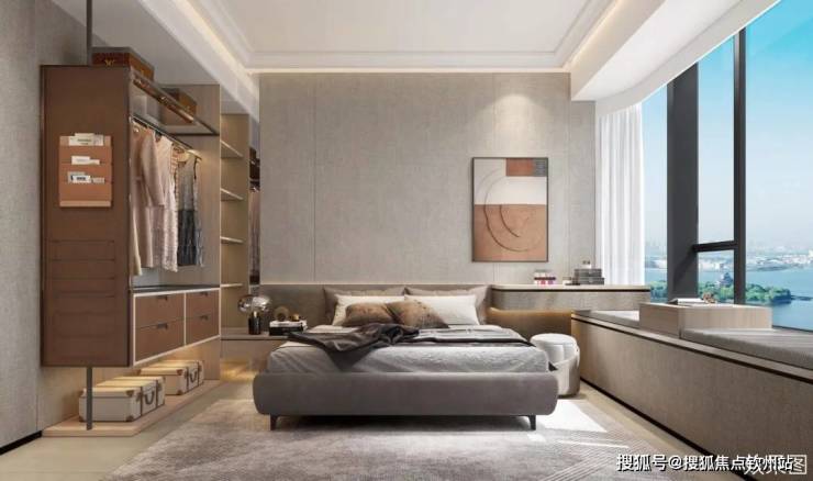 空间优化:客厅180°弧形景观窗,一体化实现功能区无缝衔接。约3.15米阔尺层高,全景窗结合高窗地比,优化采光通风。