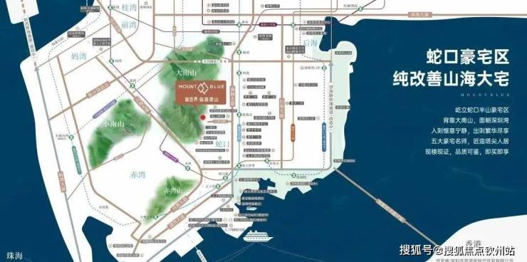 项目位于深圳市南山区蛇口片区南水工业村,西、北两侧被南山环绕,南临深圳湾,是深圳南山脚下最后一块高端住宅区,也是蛇口工业区仅存的稀有地块。