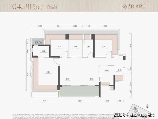 115㎡4房2卫,横厅户型,朝南看海,入户独立玄关,但三个次卧朝北;