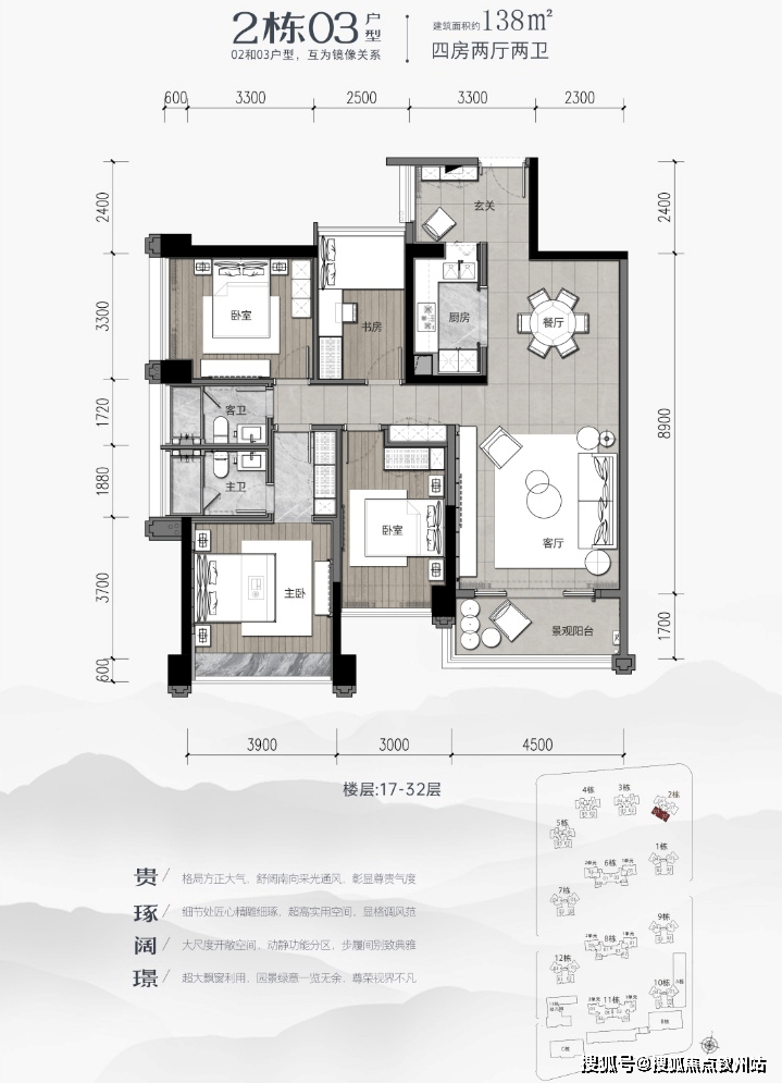 本次推出户型均在2栋,2梯四户
