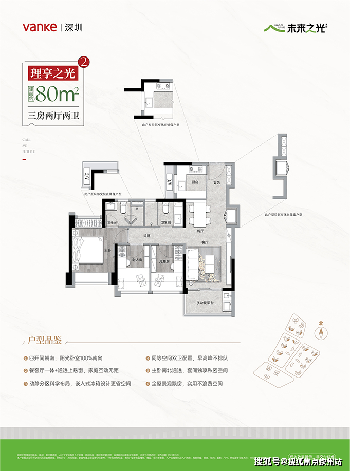 建面约80㎡A户型3房2卫