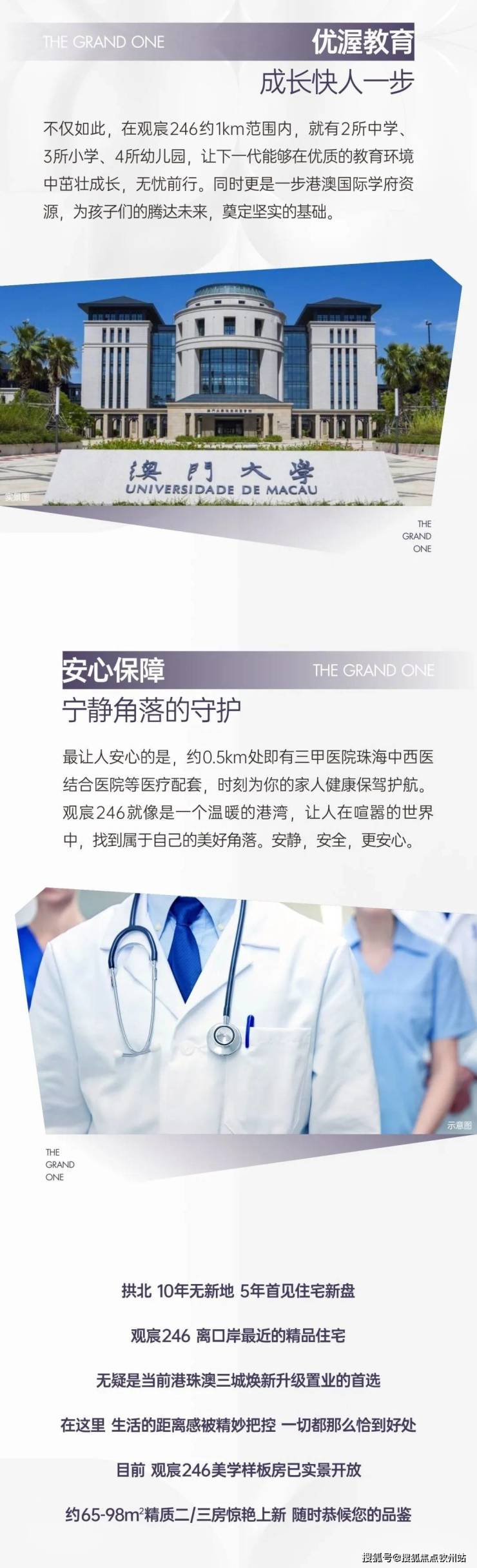 “观宸246”位居拱北口岸头排,珠澳同城核心板块,城市中心+口岸物业双极加持,近10年来距离拱北口岸、港珠澳大桥口岸最近的纯住新盘,左手澳门世界级休闲娱乐配套,右手拱北城市烟火生活,坐享醇熟配套,畅享港珠澳三城无界生活。