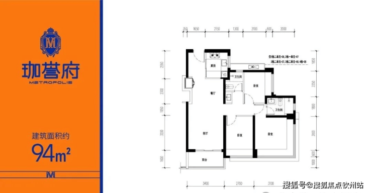 约94㎡(竖厅)三房两厅两卫【总价约435-512万】