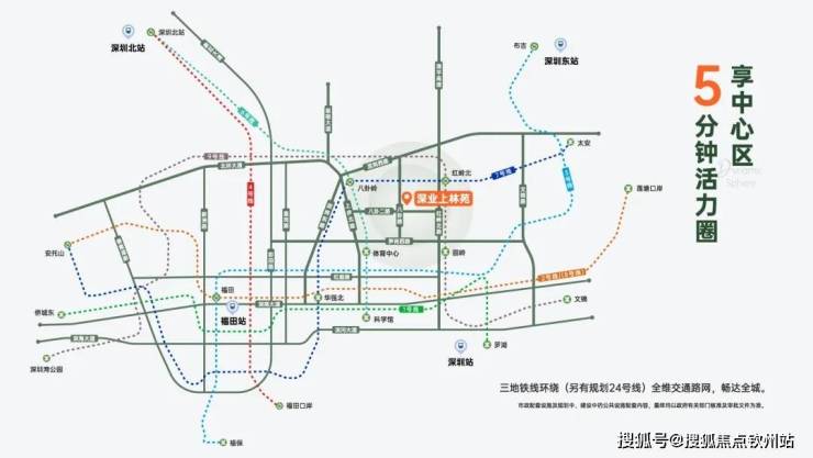 20分钟内抵达城市枢纽(福田高铁站、深圳北站、深圳站、福田口岸、皇岗口岸),出行方便。