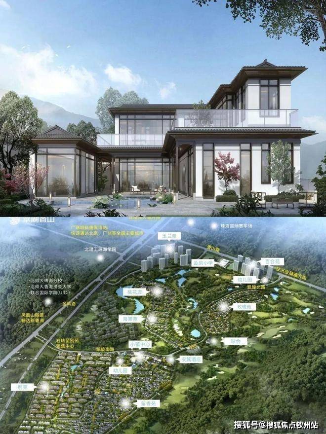 珠海翠湖香山,高端低密墅区,坐落于珠海高新区凤凰山麓,毗邻3300亩亚洲百佳翠湖高尔夫球场,依托山、湖、林、果岭等自然资源,构建了一个融合中式园林美学与现代生活理念的生态社区。项目占地约77万平方米,容积率仅0.95-0.98,绿化率高达45%,是珠海市区稀缺的“高尔夫+山景”墅居标杆
