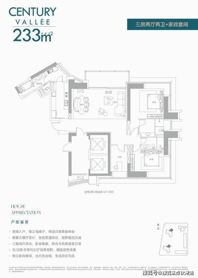 前两次都是公寓,现在住宅首发!还是定位相当高端的纯大平层而且还是无敌景观视野,8梯3户,233㎡/280㎡配备两个独立电梯,386㎡双梯设计,实在任性!