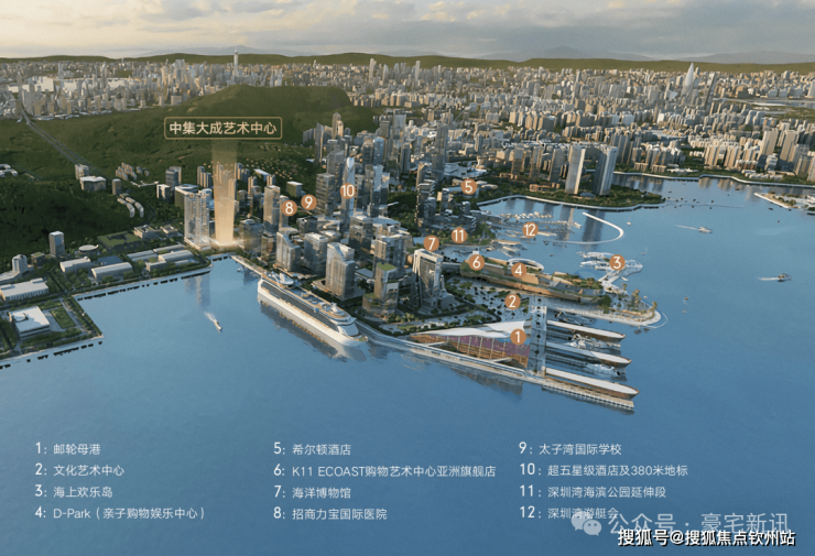 蛇口联动前海、深圳湾,构成三大千亿级经济中心格局。蛇口国际海洋城战略,太子湾作为主要承载区,对标美国哈德逊城市广场,约170万㎡滨海都会区大器已成