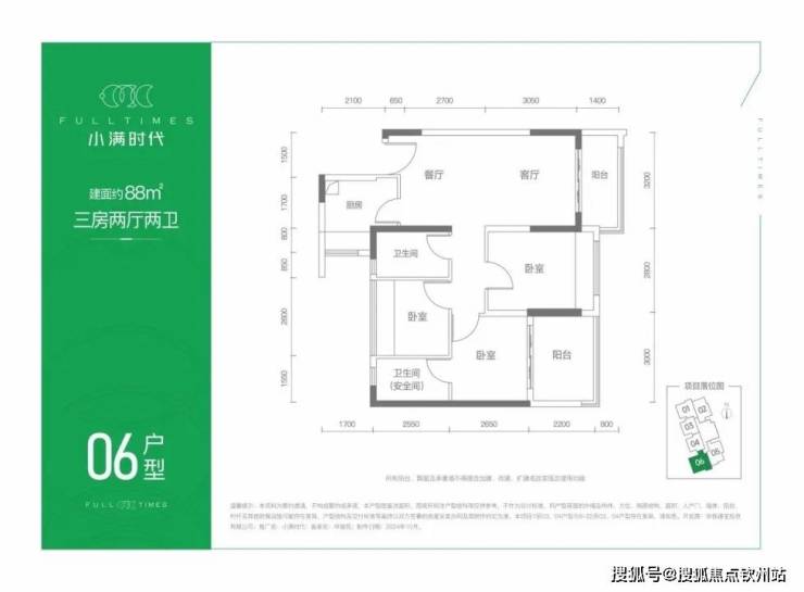 建面约88㎡ ▷3房2厅2卫◁