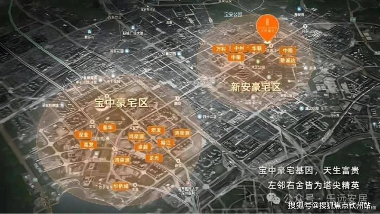 除地铁外,项目周边还拥有发达的车行交通网络,构建“三纵一横一环线”的快速路交通体系,三纵为宝安大道、广深公路、前进路,一横为创业路,同时连接北环大道与深南大道,直通南山、福田核心区,一环线为新安环线,环绕整个宝安核心区,交通便捷,可快速到达宝安国际机场、后海深圳湾、南山(高新园)、龙华、福田中心。