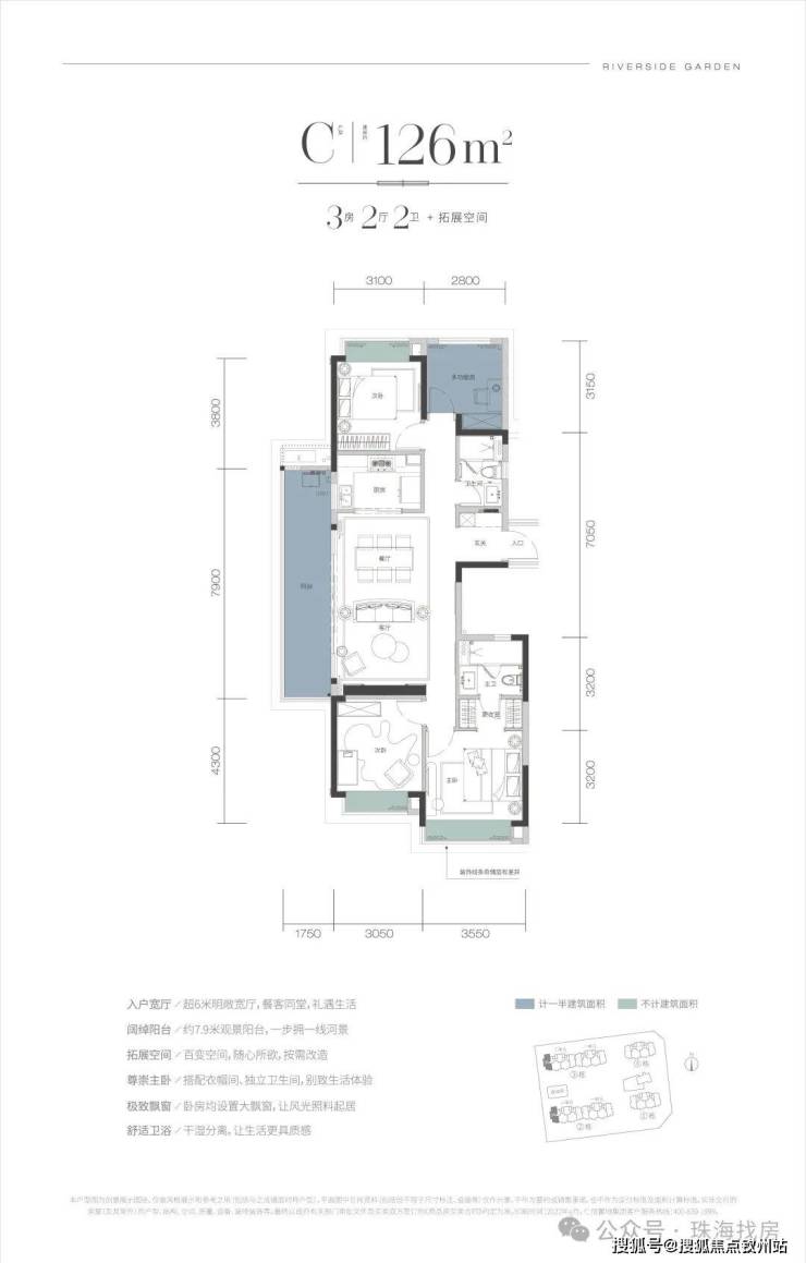 C户型——建面约126㎡ 3+1房2厅2卫